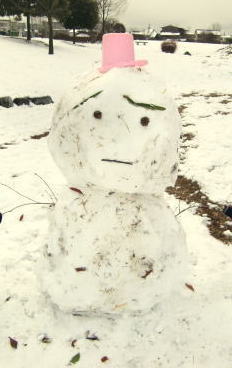 こちらも、こんなに雪が降りました。今日は雪だるまを作りました。