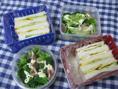 と、言わんばかりに猛烈な勢いでサンドイッチをかじり、サラダのブロッコリーをかじり。