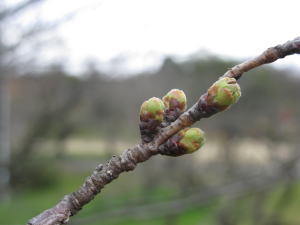 例年よりも早く梅が散ってしまいました。代わりに桜の花びらが膨らんでいます。