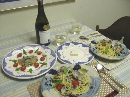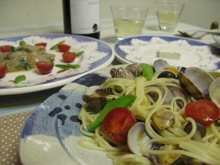 市場のおじちゃんが特別におまけしてくれたアサリを使って、今日はパスタに。