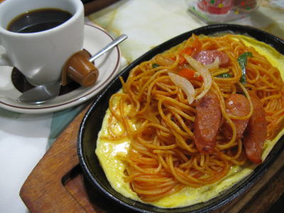 こちらは、名古屋の古い喫茶店には御馴染みのメニュー、「鉄板焼きナポリタン」です。