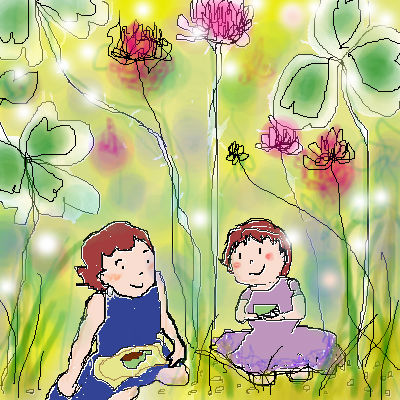 カンナさんと一緒にピクニック。濃い目の紅茶に、レンゲ草の蜜をいれて、ごっくん!